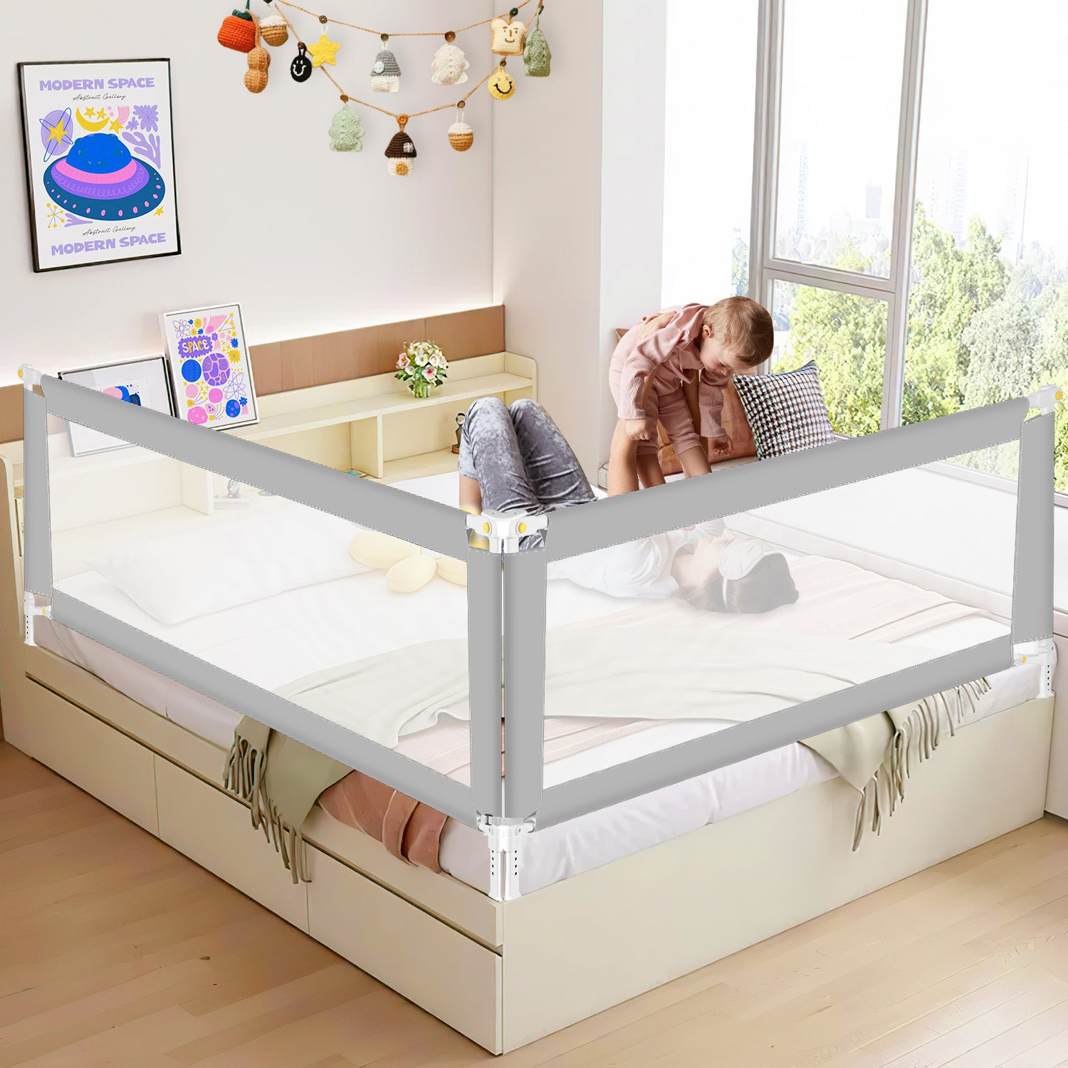 Hebitod Baby Bed Rail Foldable 150/180/200cm Height 68-95 cm