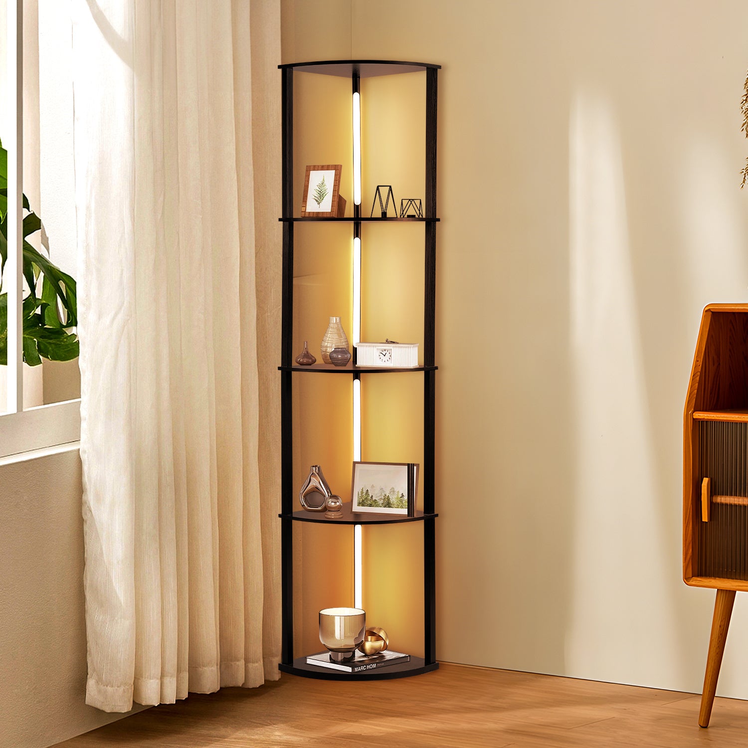 Hebitod LED Floor Lamp RGB with 3 Layers Wooden Shelves