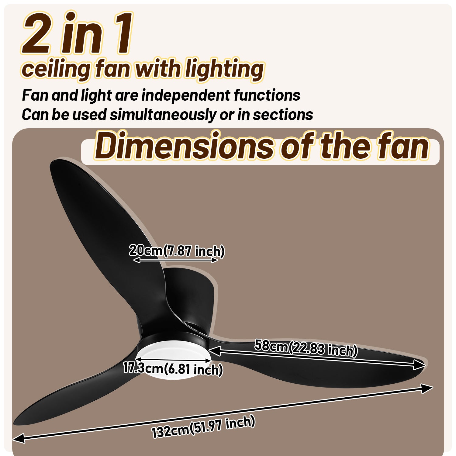 Multifunctional Ceiling Fans: The fan and light are independent and can be turned on and off individually. The combination of light and fan provides more choices.You can control the fans or lights individually.2 control options (app/remote). The smart fan can be easily adjusted from your mobile phone or the remote control anytime, allowing you to enjoy fresh and comfortable air at any time.